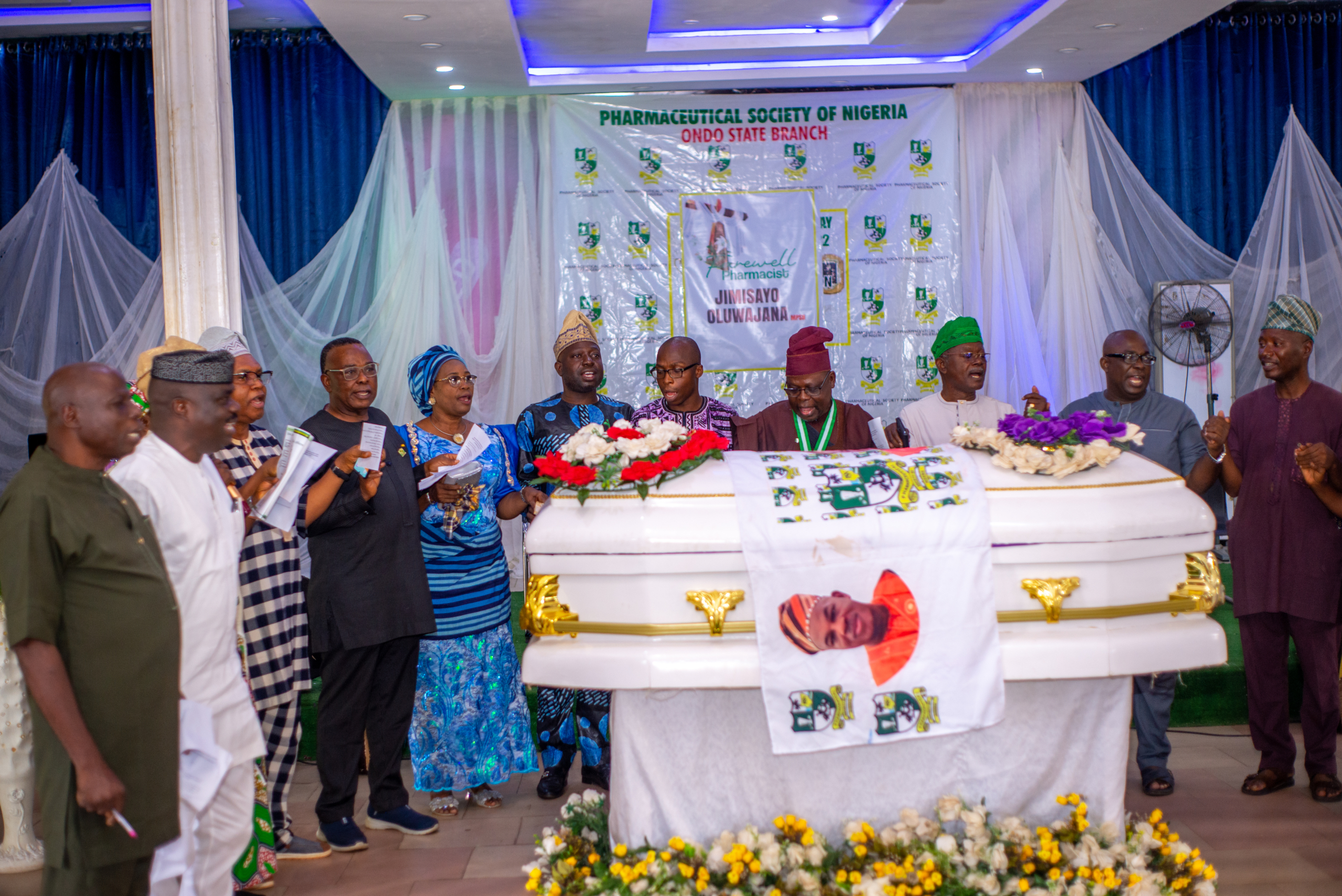 We gather here today to honour and celebrate the life of a remarkable individual, Late Pharm. Jimisayo Oluwajana. It is with heavy hearts that we say goodbye to a beloved colleague, a dedicated community pharmacist, and a cherished friend.